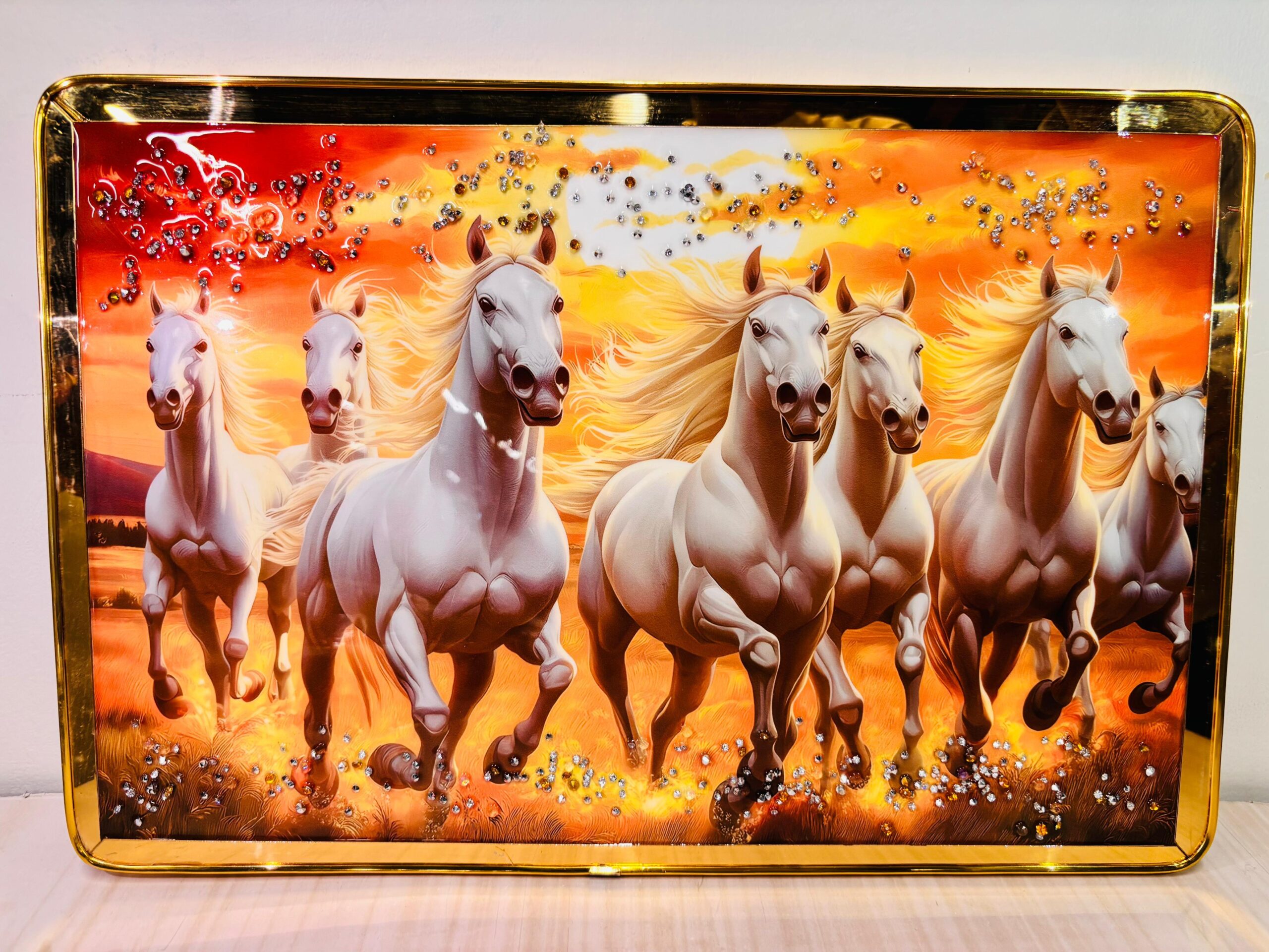 Premium Horse Crystal Photo Frame – Crafted with elegance, this Horse wall painting photo frame is adorned with sparkling crystals to create a striking and artistic visual appeal.